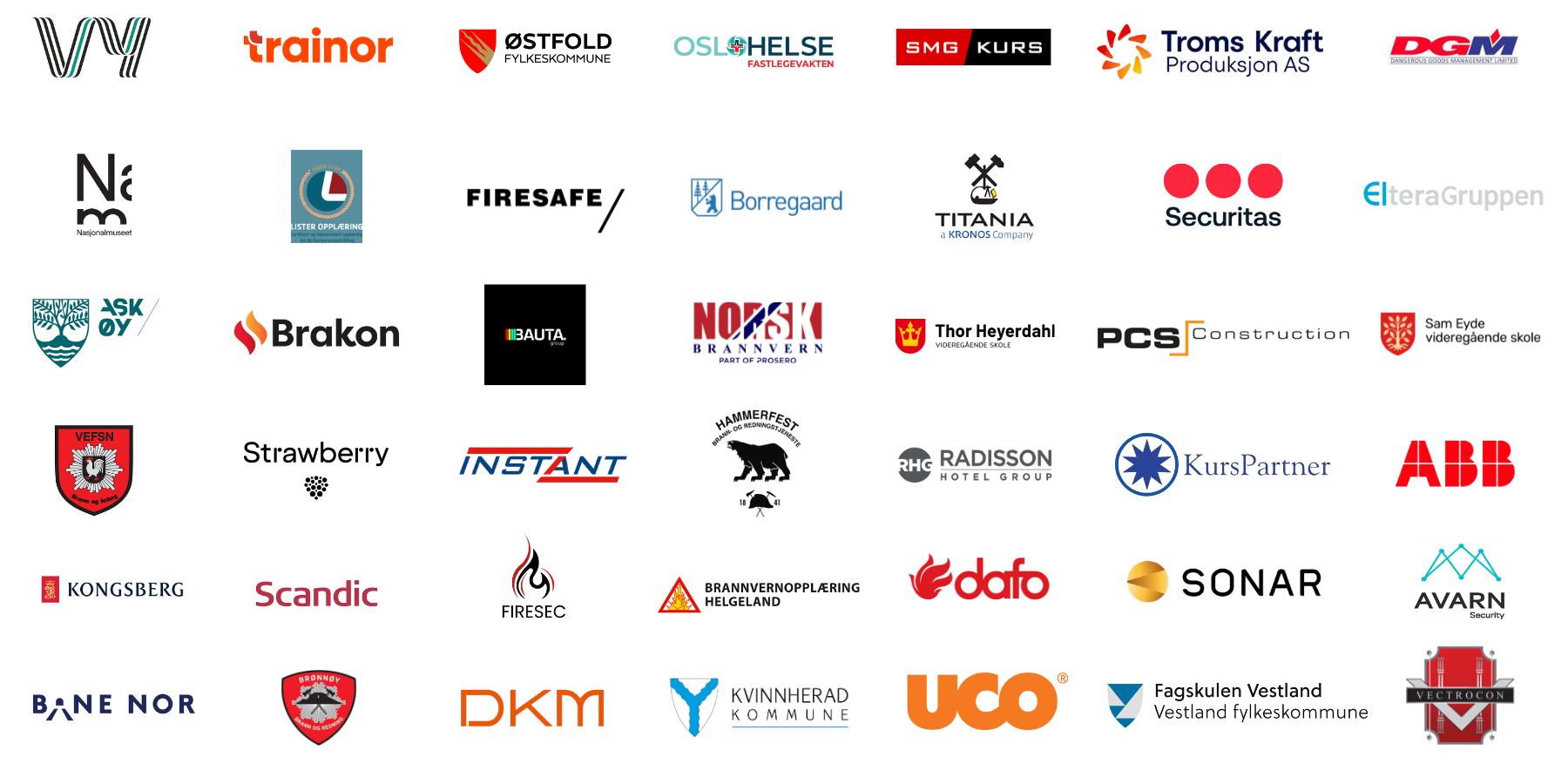 VR Fire Trainer brukes av hundrevis av virksomheter, inkludert brannvesen, instruktører, prosessindustri, kontorer, store og små opplæringsfirmaer, sykehus og kommuner
